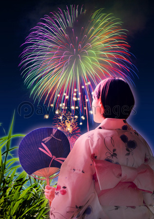 浴衣で花火を見る女性 商用利用可能な写真素材 イラスト素材ならストックフォトの定額制ペイレスイメージズ